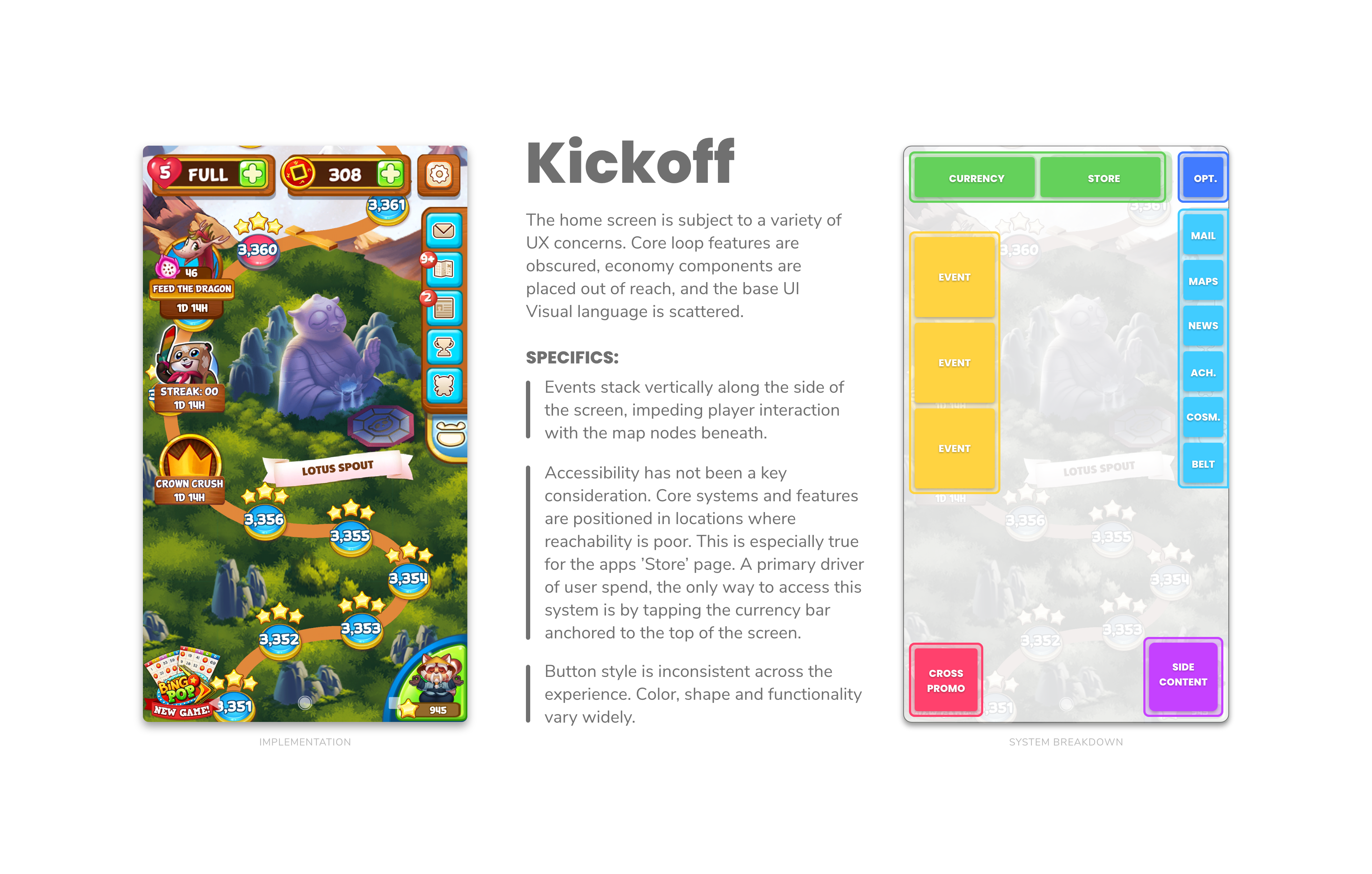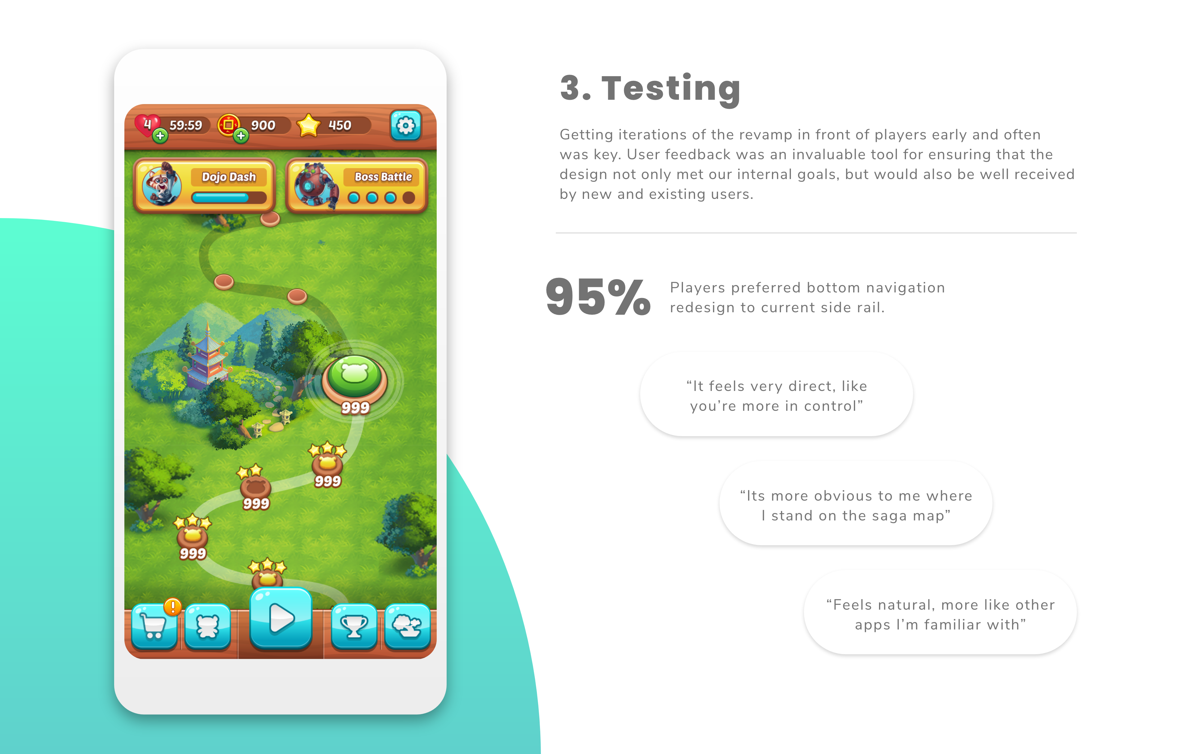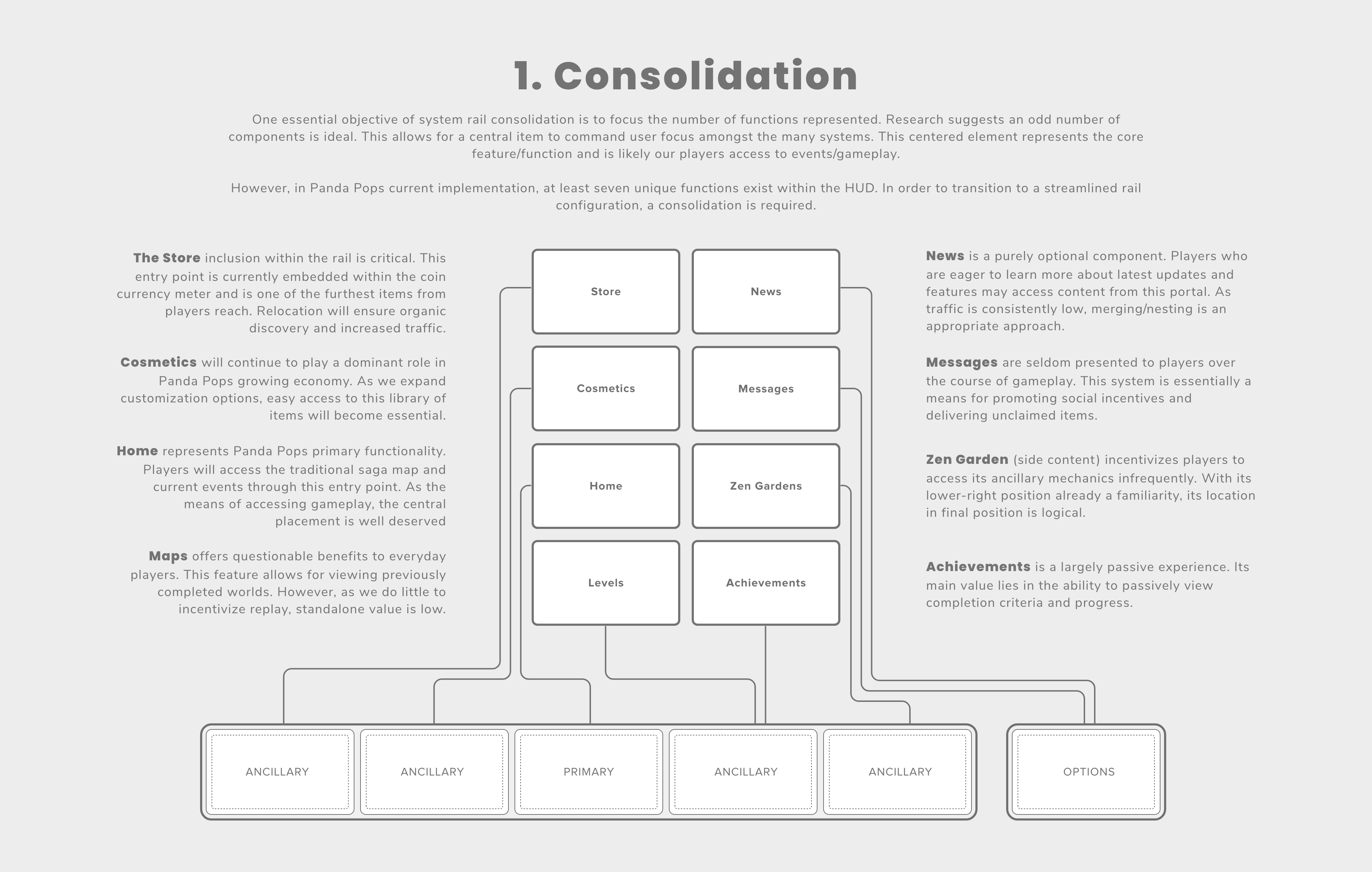 A larger UX overhaul for the primary navigation of the Panda Pop mobile game.