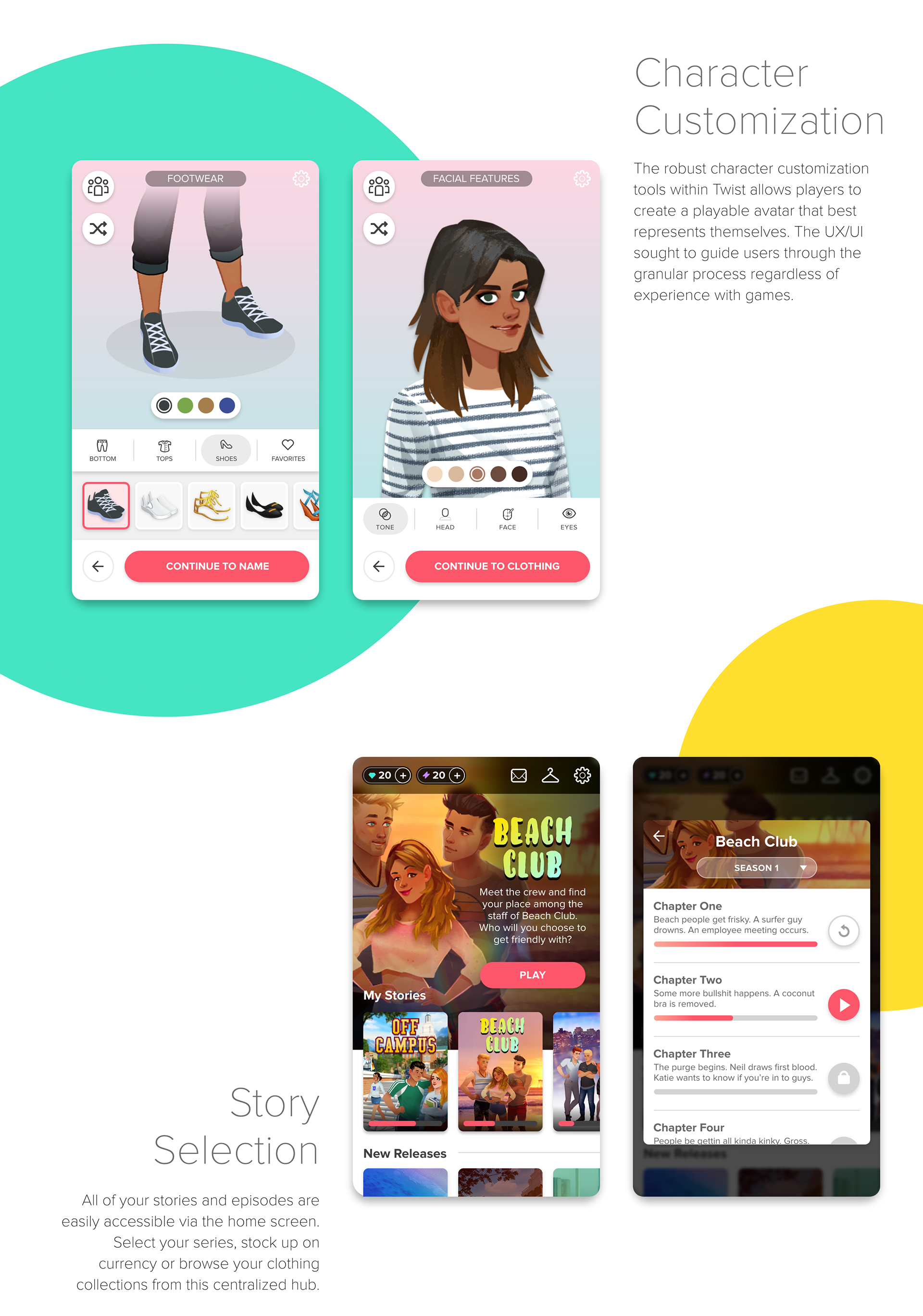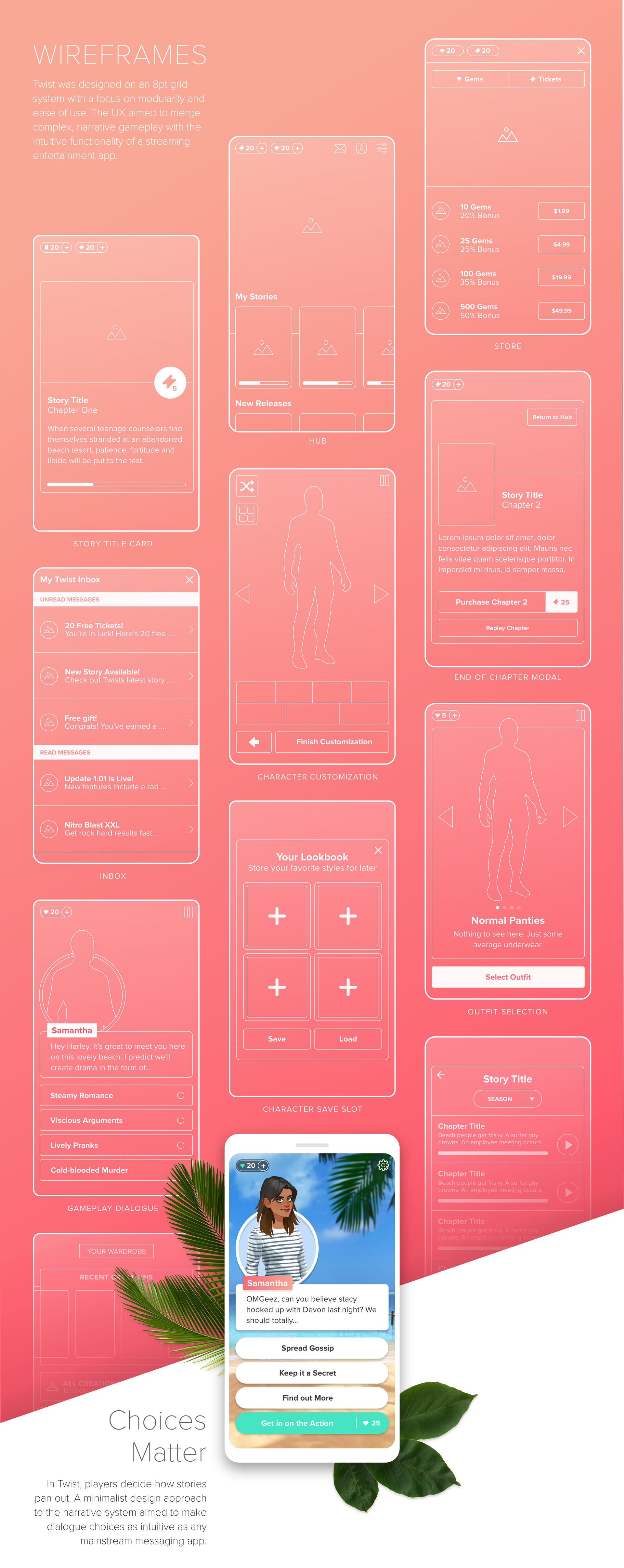 UI art direction and design for a Jam City narrative mobile game - Twist.